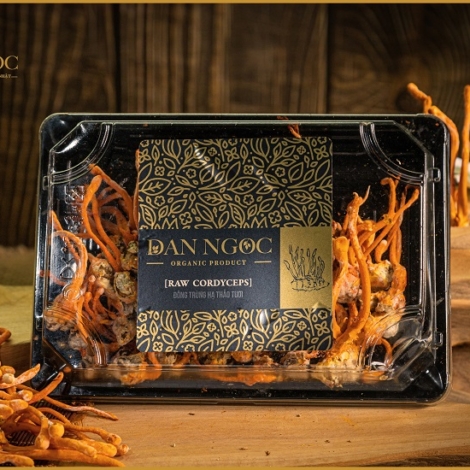 thượng hạngĐông Trùng Hạ Thảo Đan Ngọc nuôi cấy trên giá thể nhộng tằm. Bào tử nấm thuộc chủng Cordycep Millitaris nhập khẩu từ Nhật Bản & nhộng lấy từ Nông Trại Organic của Đan Ngọc.
